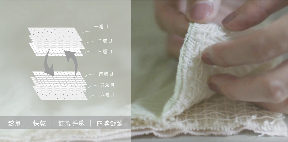 六層紗被具備透氣、快乾、蓬鬆感等特性,台灣多用在嬰幼兒寢具,在日本為追求生活質感的成人使用居多。